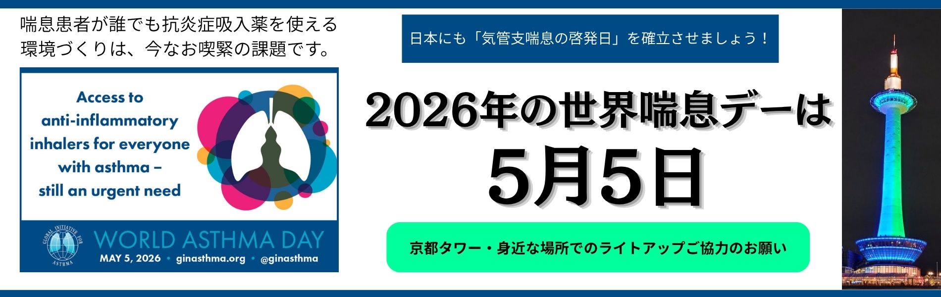 ★2026年の世界喘息デー(5月5日)の特設ページを開設しました。クラウドファンディングやご支援について詳細を記しました。ぜひご覧下さい。