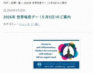 日本アレルギー友の会でも「世界喘息デー2026」のニュース